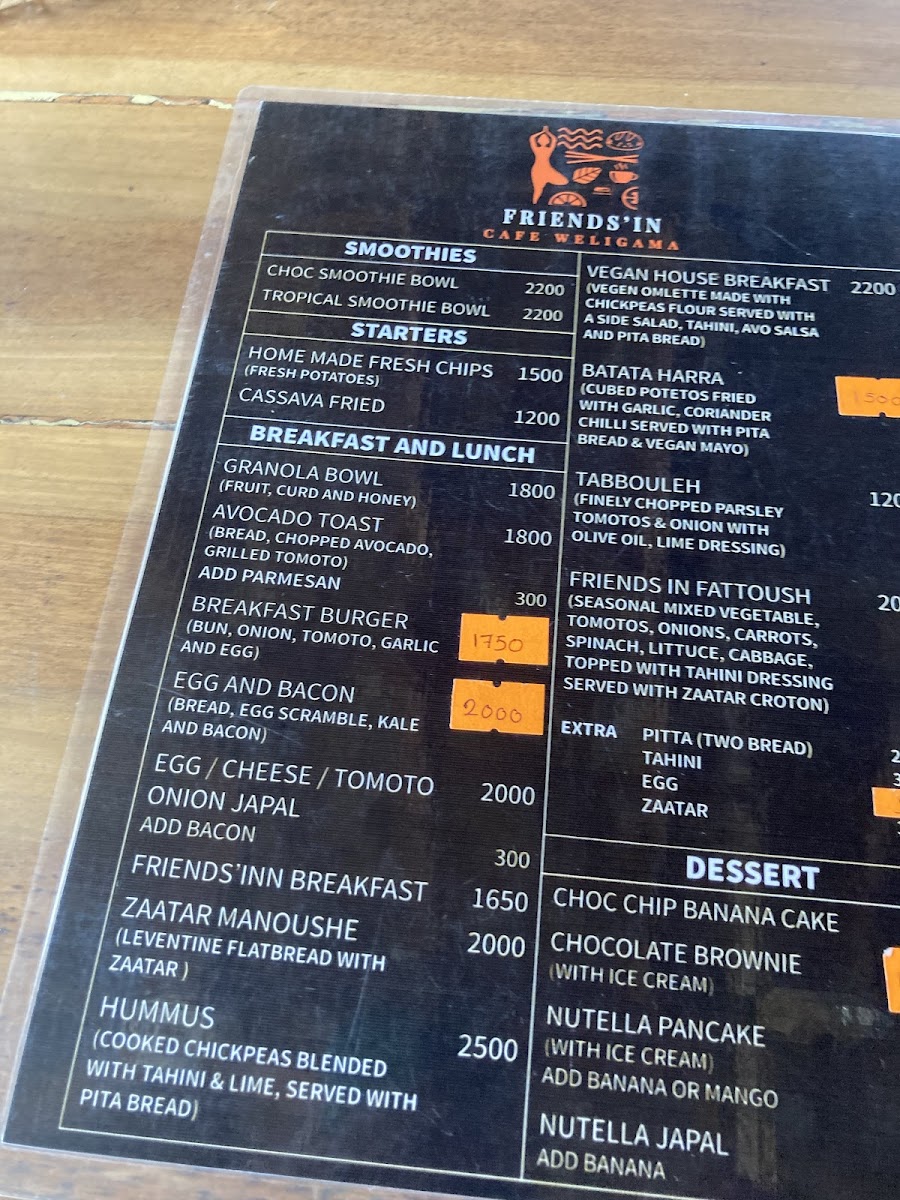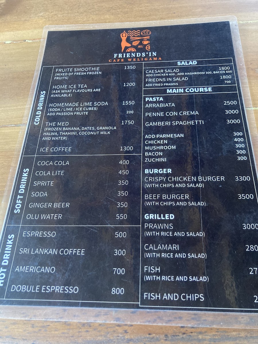 Friends'in Cafe Weligama Menu